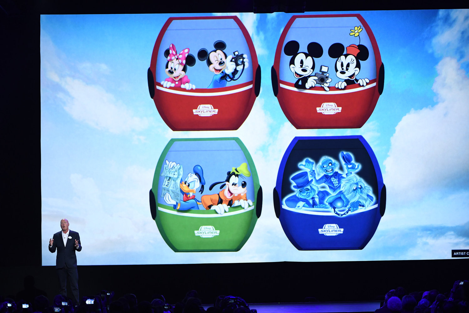 To help guests get around the 40 square miles of Walt Disney World, Chapek announced the "Minnie Vans," which are now in operation. These vans can be summoned through the My Disney Experience app to take you anywhere on Disney property. He also confirmed the gondolas, which will be called the Disney Skyliner and will connect guests staying at Disney's Riviera Resort, Caribbean Beach, Pop Century and Art of Animation to both Epcot and Disney's Hollywood Studios. The gondolas also look uniquely Disney with great character art on each one. Dibs on the Hitchiking Ghosts!