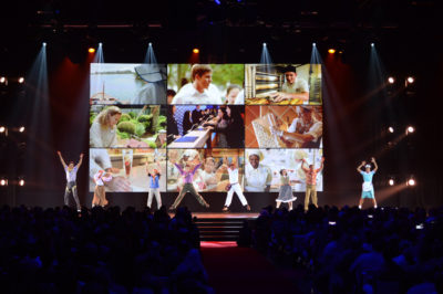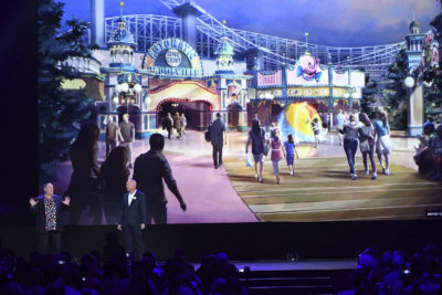 When Chapek returned, he talked about a recent ad for the return of The Main Street Electrical Parade that featured a girl walking through a warehouse and plugging in the missing light to turn the parade back on. He teased more things might be coming back and then welcomed the singers back to the stage with a medley of songs that paid tribute to Wishes, The Golden Horseshoe, Carousel of Progress, Mad T Party and Tapestry of Dreams.