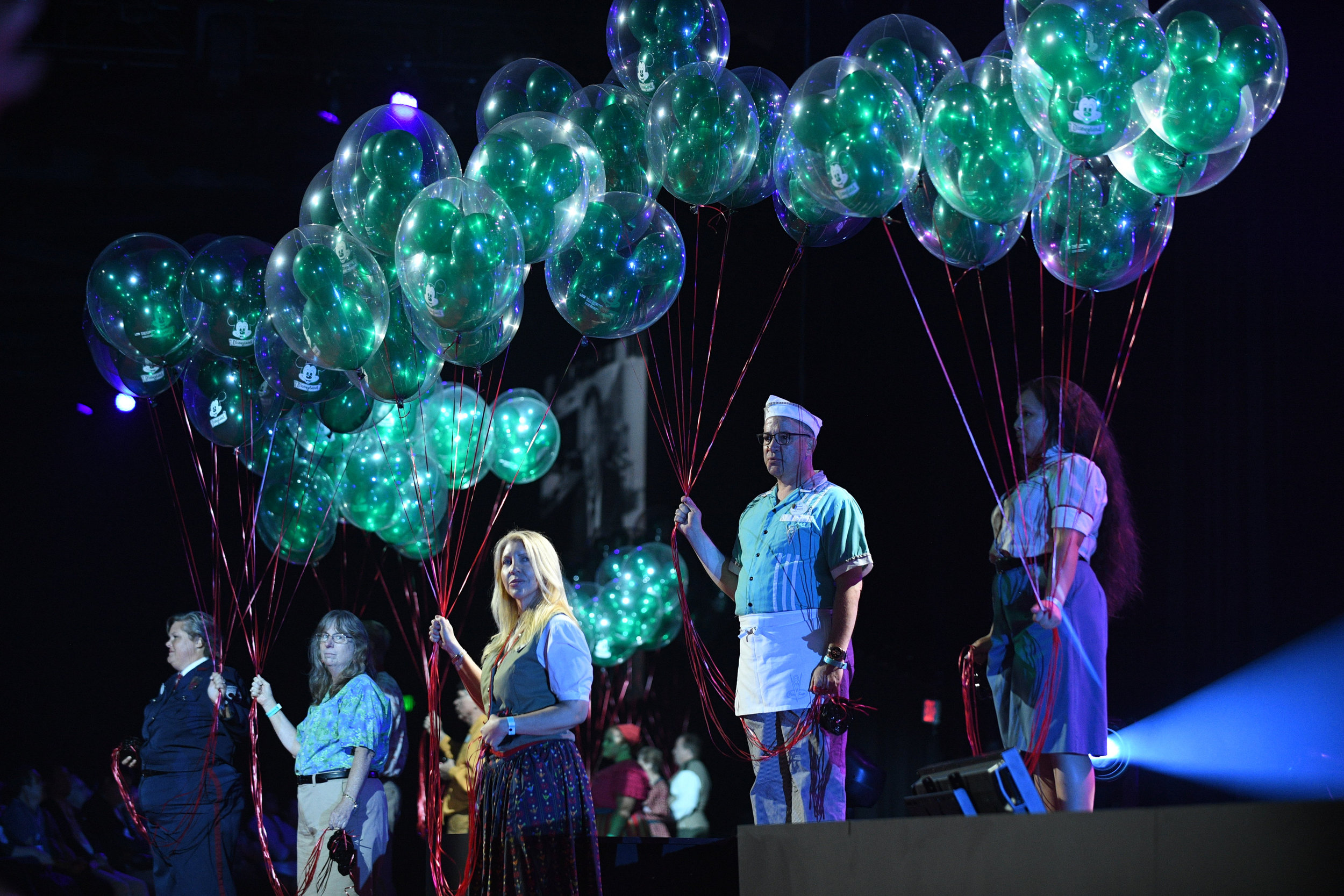 To bring the presentation home, Bob Chapek introduced a performer who read a real guest letter from the mother of a boy with autism. Her son had been fixated on getting a green Mickey Mouse balloon, but when they went to buy one on Main Street they couldn't find a balloon seller. She left her upset son and husband on Main Street while she ran around desperately trying to get him a green balloon. Two Tomorrowland Cast Members made her son's dream come true by going backstage and returning with his only request. As the performers returned to the stage singing "When You Wish Upon a Star," Cast Members joined them with bouquets of green Mickey balloons, which they handed out to guests in the audience. I'm not crying, you're crying, shut up!
