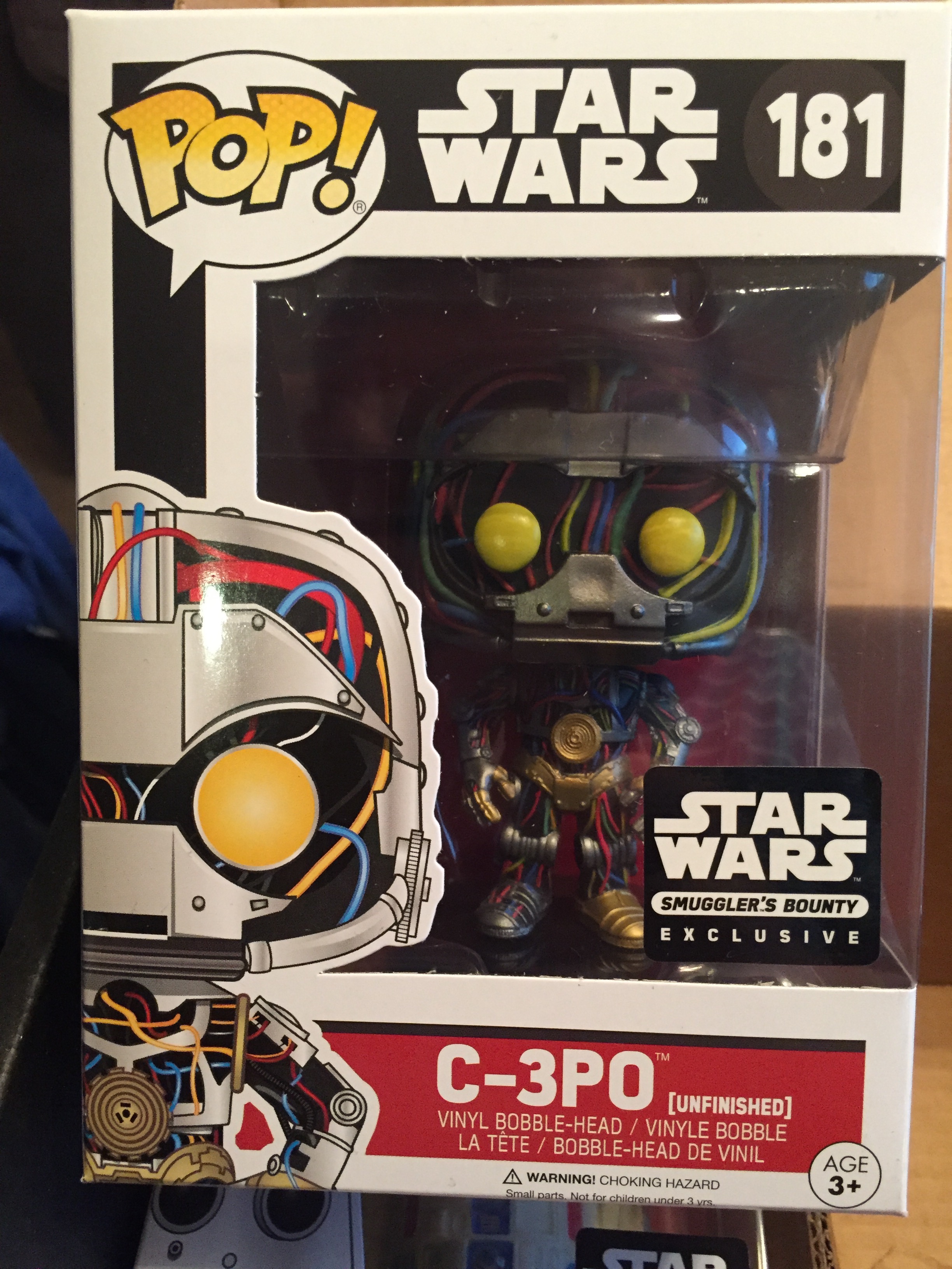 The first of two Pop! figures is the Unfinished C-3PO bobble-head from The Phantom Menace. The figure is cool, even if it does serve as a reminder of one of the many continuity errors between the prequels and the original trilogy. Annakin created C-3PO and he didn't remember that? Are you kidding me, George?