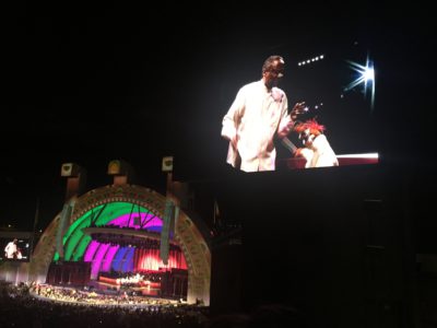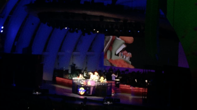 It started on a patriotic note with Sam Eagle introducing the "National Anthem." Of course, he needed a little wrangling from Stage manager Scooter as he began to ramble about the song's historic origins. Thomas Wilkins conducted the Hollywood Bowl Orchestra and the audience rose to their feet to salute our great country.