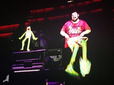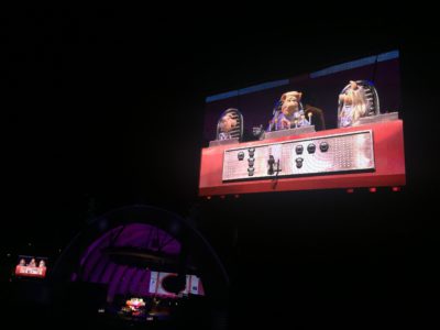 From the side of the stage, two rows of arches and curtains slid to meet in the middle, creating the iconic opening stage from The Muppet Show. The theme song began to play and the Muppets performed it completely live! It was incredible, if you grew up with these characters there was simply no way to control your enthusiasm. Hats flew off heads, cheers and squeals were heard from all corners of the amphitheater, and I'm sure more than a few people lost bladder control. It reached that level of splendor. Special guest Bobby Moynihan was called out by Kermit and when Gonzo blew his trumpet, he set off every car alarm in the parking lot by mistake.
