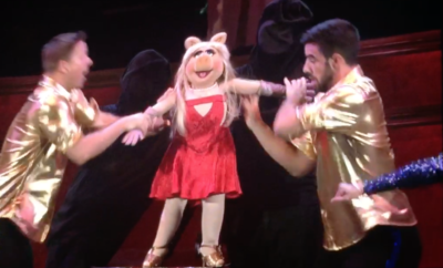 Finally, it was time for Miss Piggy's show-stopping number. She took the stage wearing a sparkly golden dress singing "Hello" by Adele. She was then joined by a dance troupe as the song picked up the tempo. Her golden dress tore away to reveal a red dress. Having previously bragged about not attending rehearsals, she was visibly shook by how many times the dancers were meant to toss her around as part of this swing version of the song.