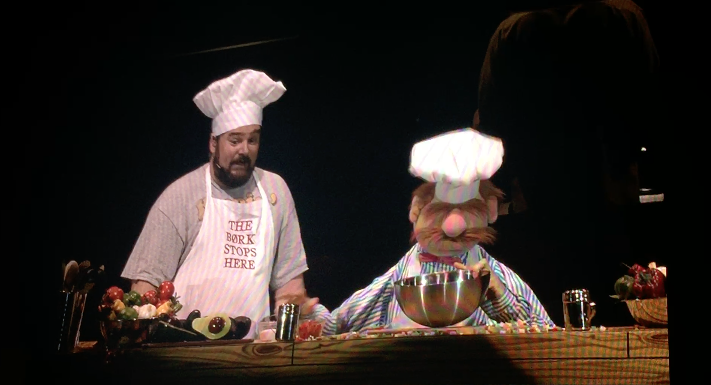 Next was the first of several live versions of classic Muppet Show sketches. PIGS... IN... SPACE!!! Captain Link Hogthrob, First Mate Piggy, and Dr. Julius Strangepork took their seats at the controls of the Swinetrek and began making pop culture jokes about other famous sci-fi properties. At this point, a legal team intercepted with a threat and the crew decided to set their course for the public domain.