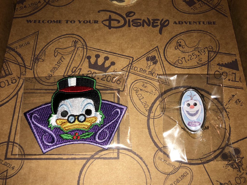 The pin is Scrooge McDuck from the new Disney XD iteration of Ducktales and while some of his expeditions take him to frosty mountains, I wouldn't say this exactly fits the theme. The pin is Olaf, the first of two Frozen items.