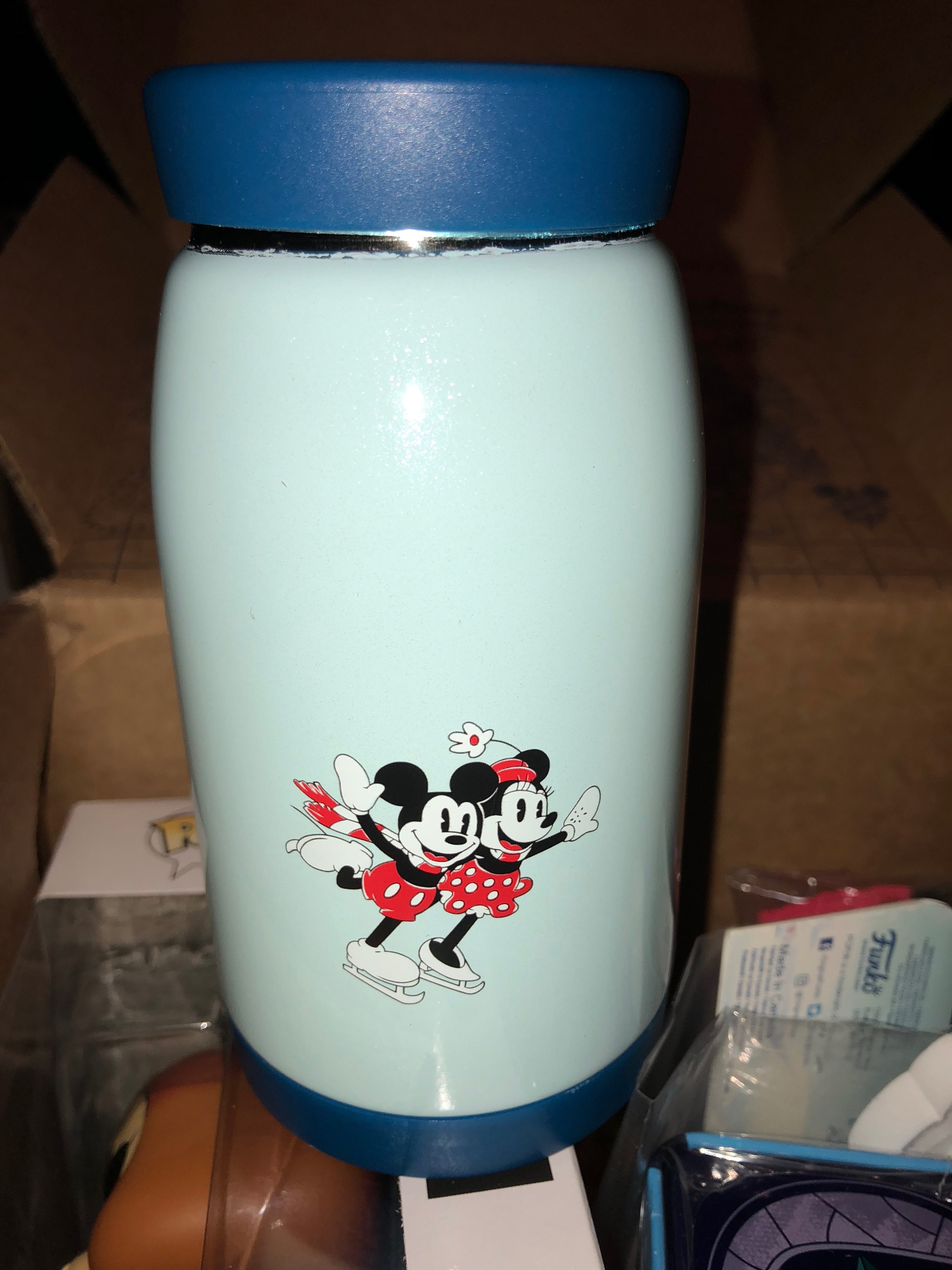 The first item I removed is a thermos, which looks bigger than it actually is. The light-blue body has specks of glitter that make it feel particularly wintery and I love the artwork of Mickey and Minnie skating. I was surprised/delighted that they aren't Funko-styled, but I have to admit that I don't know when I'll ever use this.
