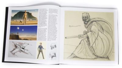 The book slides out from the side, containing the three records in addition to 47-pages celebrating the anniversary of this groundbreaking film. Images include concept artwork, behind-the-scenes photos, and pictures of John Williams' life and career. There are two essays, one exploring the history and success of the original film by Jeff Bond, the other providing information on John Williams' life and career highlights.