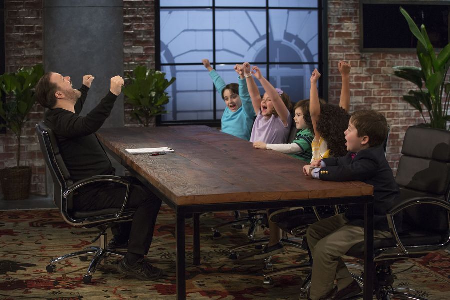 The good news is that Ricky Gervais isn’t competing against the kids, but is with them competing against grown up game show contestants in a studio that looks like Who Wants to be a Millionaire. Savage asks questions and whether the contestant answers correctly or not, we then watch Gervais and the kids try and answer as well. In the event that a contestant gets the answer wrong, their total amount of potential winnings decreases and they remain in the game if the kids got the answer correct. They are only out of the game when both the contestant and the kids get the answer wrong, in which case they walk away with nothing.