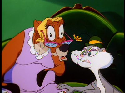 Animaniacs had quite a large selection of short segments beyond the Warners, including a pigeon spoof of the R-rated film Goodfellas with "Goodfeathers." But my personal favorite has become Slappy the Squirrel, reason being that this character was an aging cartoon star who had the dirt on on the classic cartoon actors we all love. Of particular interest to me was the number of times her segments were used to reference and poke fun at Disney. From watching "The Wonderful World of Walnuts" on TV to introducing her bereaved grandson to the actress who played Bambi's mother to prove that she was alive and thriving in a nursing home, when I watch the show as an adult I become elated when a Slappy sketch begins. Even Slappy's hat, which features a drooping daisy hanging off the brim, harkens back to Minnie Mouse's earliest style.