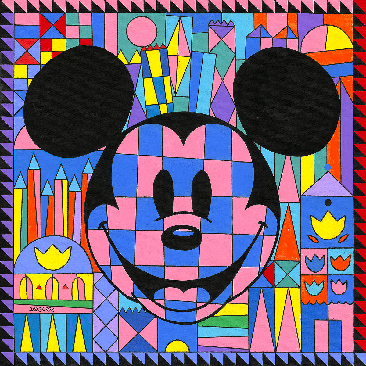 Loveless' TEN x TEN x TEN series came about almost by accident. Disney Fine Art by Collector's Editions had several artists working on a project of painting Mickey head silhouettes and Tennessee Loveless' contributions were so well received that they asked him to do ten of them, called "Ten by Tennessee." Each time he would submit more pieces, more were requested and ultimately his series, which are all on 10" by 10" canvas, became titled "TEN x TEN x TEN" with one hundred pieces in the collection.