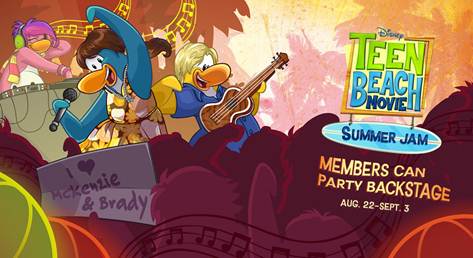 Disney’s Club Penguin, the #1 virtual world for kids, keeps the summer fun flowing with the ultimate summer party - “Teen Beach Movie” Summer Jam event. “Teen Beach Movie” is the #2 movie in cable TV history in Total Viewers (13.53 million) and the #2 cable TV telecast of all time across Kids 2-11 (8 million), Kids 6-11 (6.4 million) and Tweens 9-14 (5.11 million), behind only "High School Musical 2." And to keep the party rolling, Club Penguin Island will transform into a surfing and motor-biking paradise from August 22 to September 3, featuring guest performances by penguins inspired by popular "Teen Beach Movie" characters Brady and McKenzie.