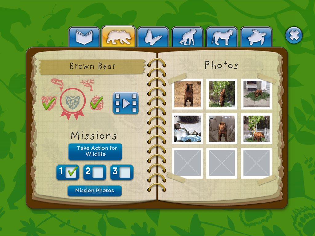 Kids can explore the worlds of five different animals, each with four unique challenges. In the activities kids will be able to catch salmon like a brown bear and follow tracks to find her bear cub, hunt a warthog with a lion, view the world from the eyes of a monarch butterfly, fish for termites like a chimpanzee and more.