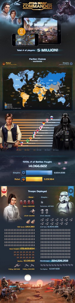 Five million players have now joined the war (downloaded Star Wars: Commander since its launch on August 21st). To celebrate, Disney Interactive has released this Infographic regarding the game. You can read Patrick's review of the game here.