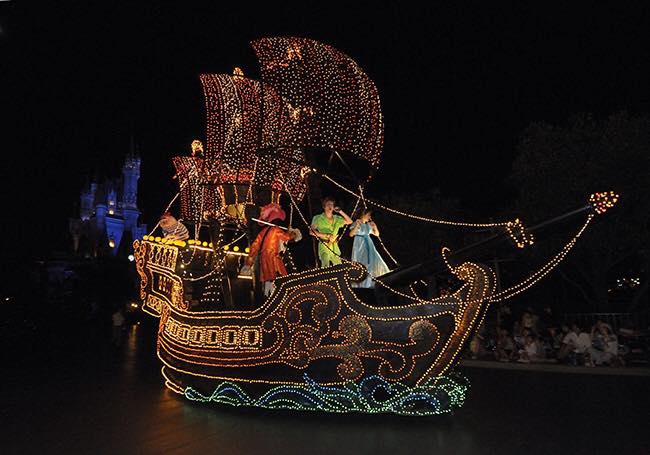 “Tokyo Disneyland Electrical Parade Dreamlights” This nighttime parade will be presented with a brand new float featuring Rapunzel and Flynn Rider from the Disney film Tangled. Also, seven other floats, including the pirate galleon from Peter Pan, will be revamped. With these changes the parade will lend even more sparkle to the Park after dark.