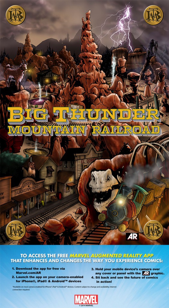 Coming in spring 2015, the world famous, thrill-packed Disney attraction – Big Thunder Mountain Railroad – roars to life as an all-new Marvel and Disney Kingdoms comic book bursting with action, romance, mystery and adventure. The new series, Big Thunder Mountain Railroad, continues the unique collaboration between Marvel Comics, Disney Kingdoms, and Walt Disney Imagineering. This five-issue series, created by rising star writer Dennis Hopeless (Spider-Woman, Avengers Arena), fan-favorite artist Tigh Walker (Avengers Undercover), invite readers all aboard an all-new adventure that reveals the never-before-told saga of how the gold mine in Big Thunder Mountain became the haunted legend it is today!