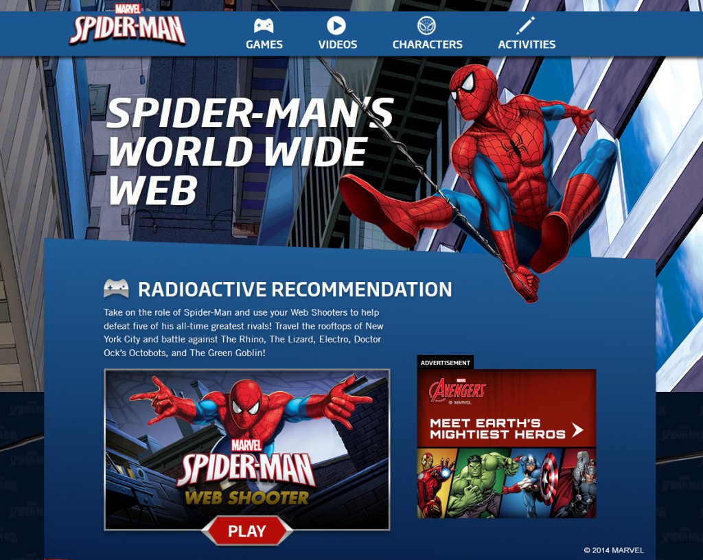 "Kids and digital go hand in hand, so we created a new online experience exclusively for kids that allows them to engage with the Marvel heroes they love and even be a hero themselves through the games," said Kristin Vincent, Marvel’s VP of Digital Products. "We'll keep rolling out new games, videos and other content so kids can have fun online with Spider-Man and soon with the Avengers while in a kid-safe digital environment."
