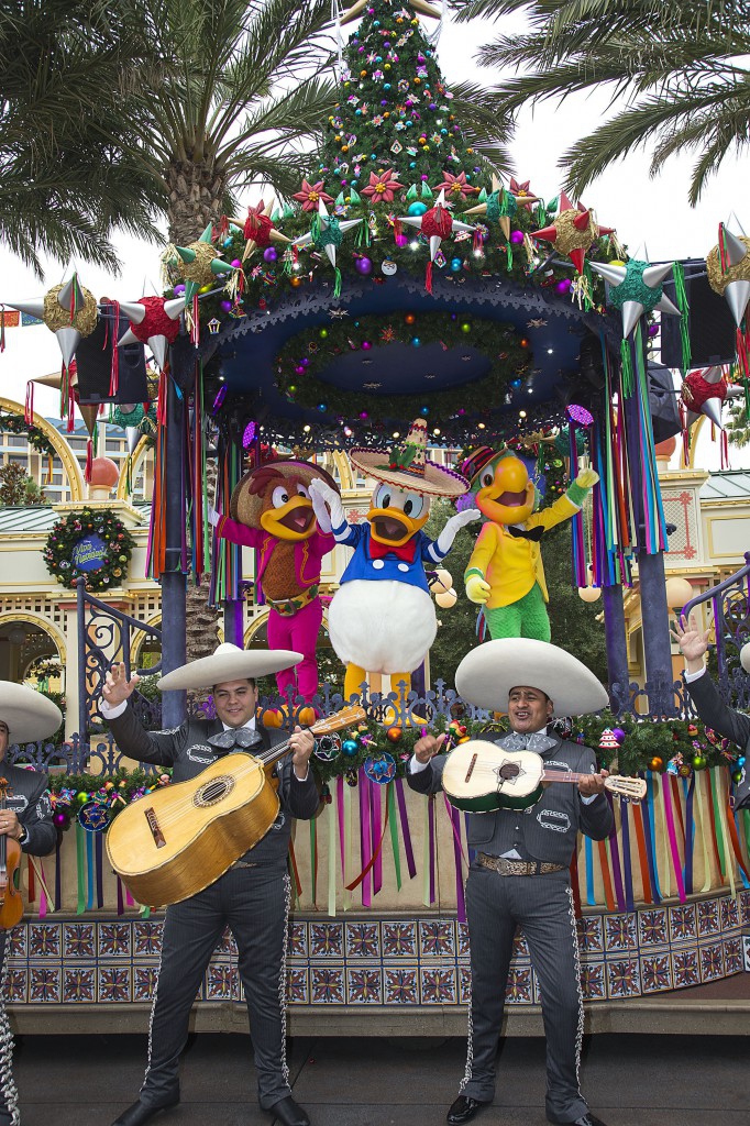 - The lively “Disney ¡Viva Navidad! Street Party” takes over Paradise Garden several times a day, featuring the Three Caballeros on a colorful holiday float, Mickey Mouse and Minnie Mouse on brightly decorated street tricycles, Brazilian samba dancers and drummers and flag bearers. The street party draws on long-standing traditions that continue to be practiced today in small towns and cities of Mexico, where townspeople celebrate the holidays by processing down cobblestone streets with Mariachi bands, Folklórico dancers, larger than life “mojiganga” puppets and colorful flags.