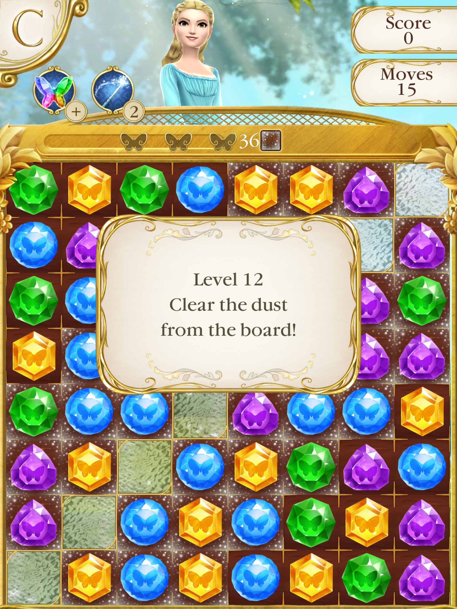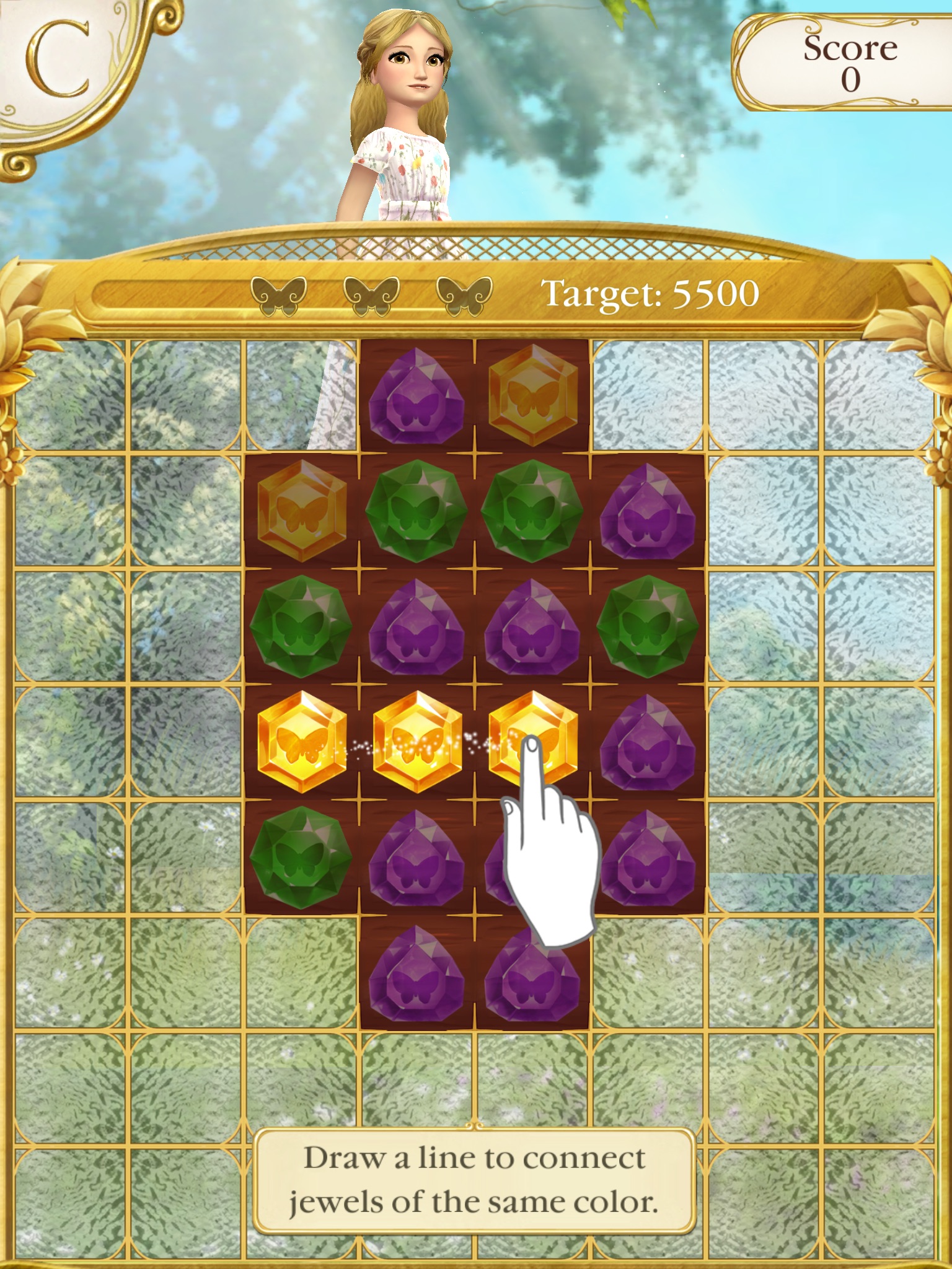 Help Cinderella in her magical journey to connect same colored jewels to advance levels to go to the ball and meet her prince. You start as young Ella and while progressing through one hundred levels, you see her transform into the beautiful Cinderella after completing certain tasks and levels. Through the game you can create different patterns while connecting the jewels to unlock special helps, such as a magic butterfly, magic wishes, and familiar furry friends. You also might be lucky enough to see Gus and Jacqueline on your quest.