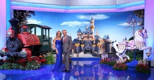 The famous “Wheel of Fortune” set has been transformed to showcase the iconic Sleeping Beauty Castle at Disneyland Park and Cinderella Castle at Walt Disney World Resort, plus classic Disney attractions brought up to the studio from Disneyland.