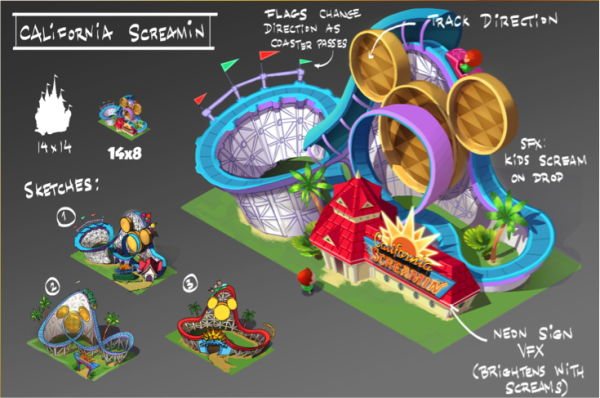 Disney Magic Kingdoms will allow players to build the theme park of their dreams by recreating and placing iconic attractions in a fun animated landscape. With influence from the Disneyland Resort in California, Walt Disney World Resort in Florida, Disneyland Paris and more, the game reimagines Disney Parks for mobile, letting fans experience an authentic and magical experience anytime, anywhere. Gameloft and Disney Interactive worked with Walt Disney Imagineering to bring Disney attractions such as Space Mountain, "it's a small world", California Screamin' and many more to life in the game.