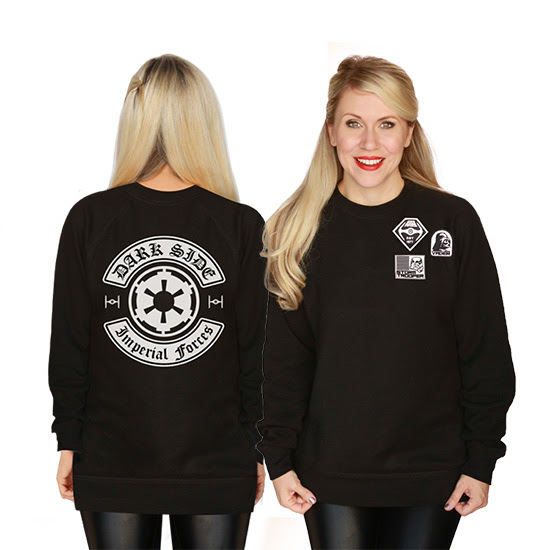 Don’t underestimate the power to get noticed in this unique and comfy Star Wars sweatshirt from Her Universe! Covered with amazing individual dark side patches featuring Darth Vader, Stormtrooper, TIE Fighter and a huge patch on the backside featuring the Imperial symbol, this sweater is “Most Impressive!”