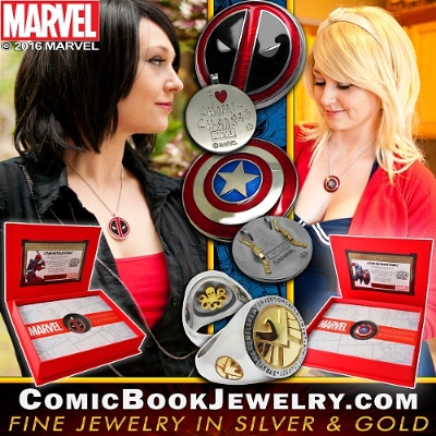 Your favorite Marvel characters have now inspired quality pieces produced by What's Your Passion Jewelry. Available in silver and gold, these pendants and rings can be purchased on ComicBookJewelry.com.
