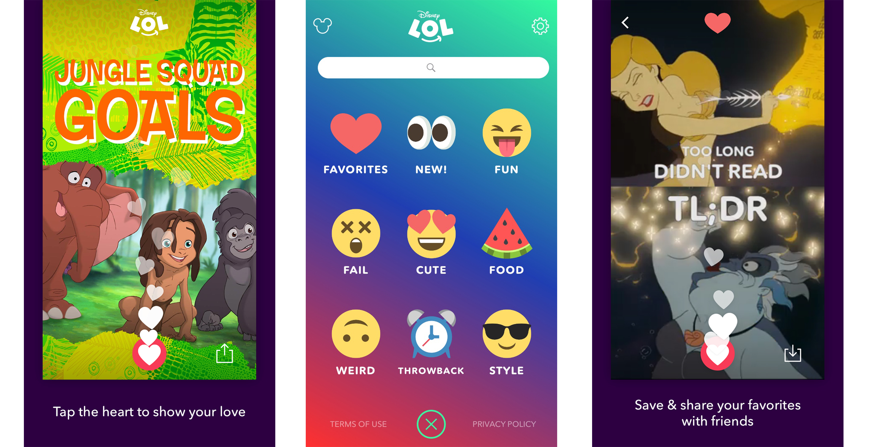 The Disney LOL app builds on the success Disney is experiencing with content created for various social media and micro content platforms. Disney currently has 1.15 billion followers across these platforms (Facebook, Twitter, Instagram, Tumblr, Pinterest, YouTube, Snapchat and Vine), driving 325 million views per month.