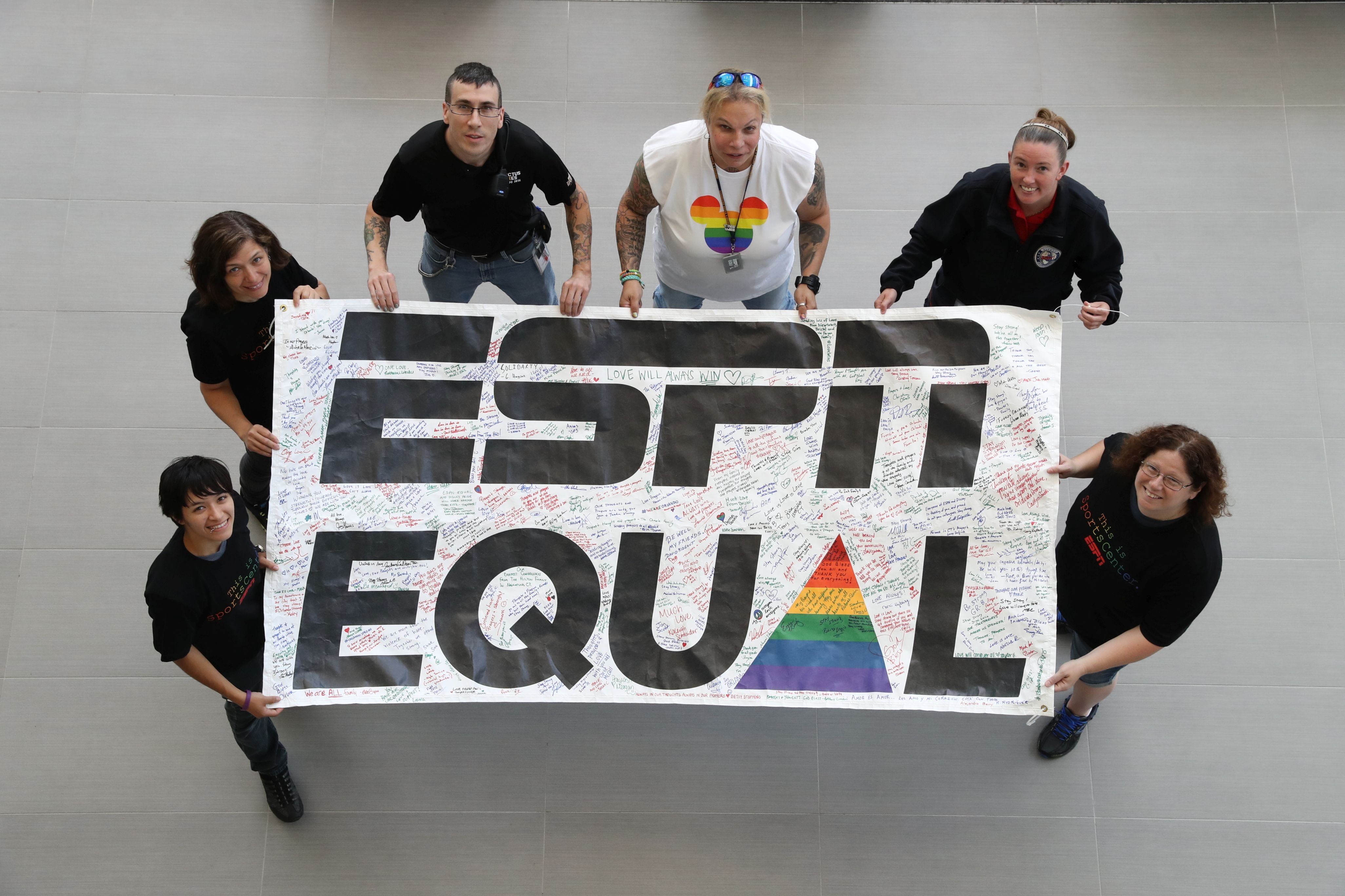 As ESPN Front Row writes, "In the wake of tragedy, people come together, rise above, and exhibit to the world a trait of human kindness that proves we are one. With the attack on the Pulse nightclub last month in Orlando, many lives were changed forever. Hundreds of ESPN employees signed banners that were set out at both cafes, and at the Los Angeles Production Center (LAPC), and then were sent down to Disney in Orlando. With the assistance from the Communications Production Group, ESPN EQUAL produced a seven-minute video expressing our thoughts for our colleagues at Disney. Twenty-one participants from across ESPN contributed to the video."