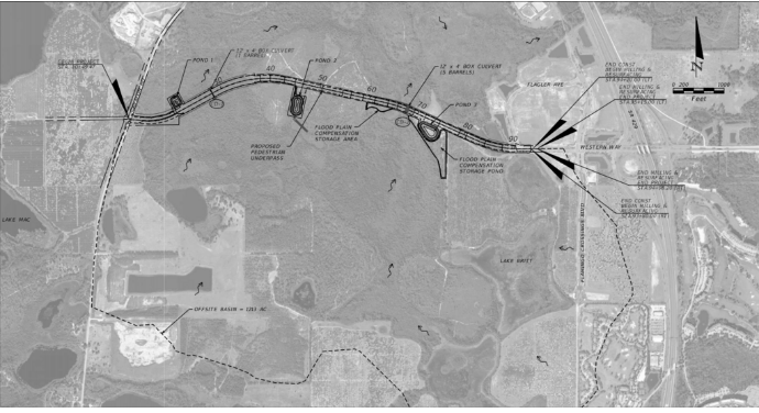 The Reedy Creek Improvement District has filed plans with the South Florida Water Management District to extend Western Way. The road, which leads into Walt Disney World by Coronado Springs, is home to Disney's Flamingo Crossings development on the opposite side.