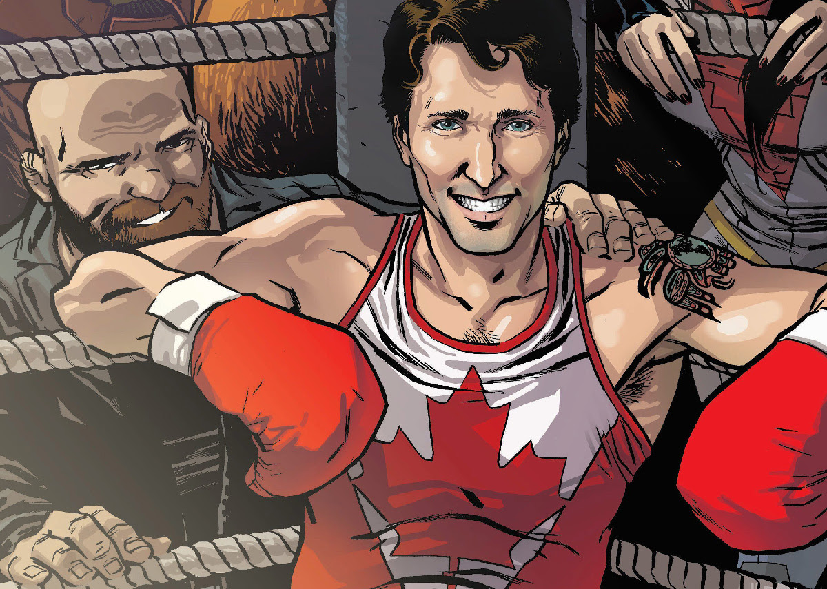 But it’s not done yet, because Trudeau meets up with a broken and tired Iron Man to spar in a gym in Ottawa. The dialogue between the two, real Prime Minister and imaginary billionaire seems real, like it has happened, and that’s what makes this comic so appealing. I can suspend the disbelief of aliens and humans with meta powers because of the inclusion of reality. It all seems like it could happen.