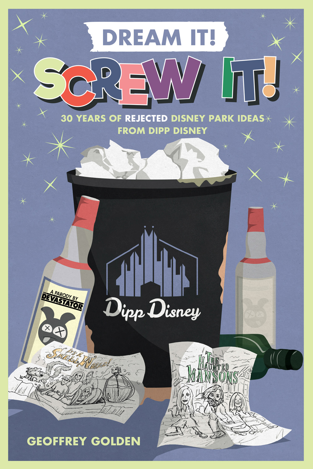Humor author and Disney Princess comics writer Geoffrey Golden is publisihing Dream It! Screw It! which " lovingly mocks the history of Disney theme parks." This art book parody tells the life story of Dipp Disney – Walt's drunk, dumb cousin with a job for life at Imagineering – through dozens of his Disney attraction ideas rightfully rejected for being too impractical, violent, sexy, insane, or all of the above. Dream It! Screw It! combines photos, scrapped plans, embarrassing anecdotes, and concept art by award winning indie cartoonists