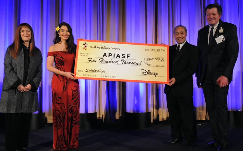 The Walt Disney Company has announced that they will be making a $500,000 commitment to the Asian & Pacific Islander American Scholarship Fund (APIASF) which will go toward supporting high-achieving Asian and Pacific Islander college students. These funds will provide 150 scholarships to students over the course of three years starting with the fall 2017 semester. Auli‘i Cravalho, who voices the title character in Disney upcoming film Moana, made the announcement at an APIASF gala along with producer Osnat Shurer, Disney's chief diversity officer Paul Richardson, and APIASF President and Executive Director Neil Horikoshi.