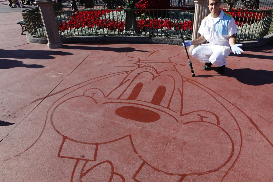 The program will have custodial cast members check-out iPhones that will track their location and give the cast member directions to complete necessary tasks. Sensors will alert a nearby cast member after a certain number of people have used a restroom or if a trash can is 2/3 full so that they can preemptively address typical theme park custodial challenges.