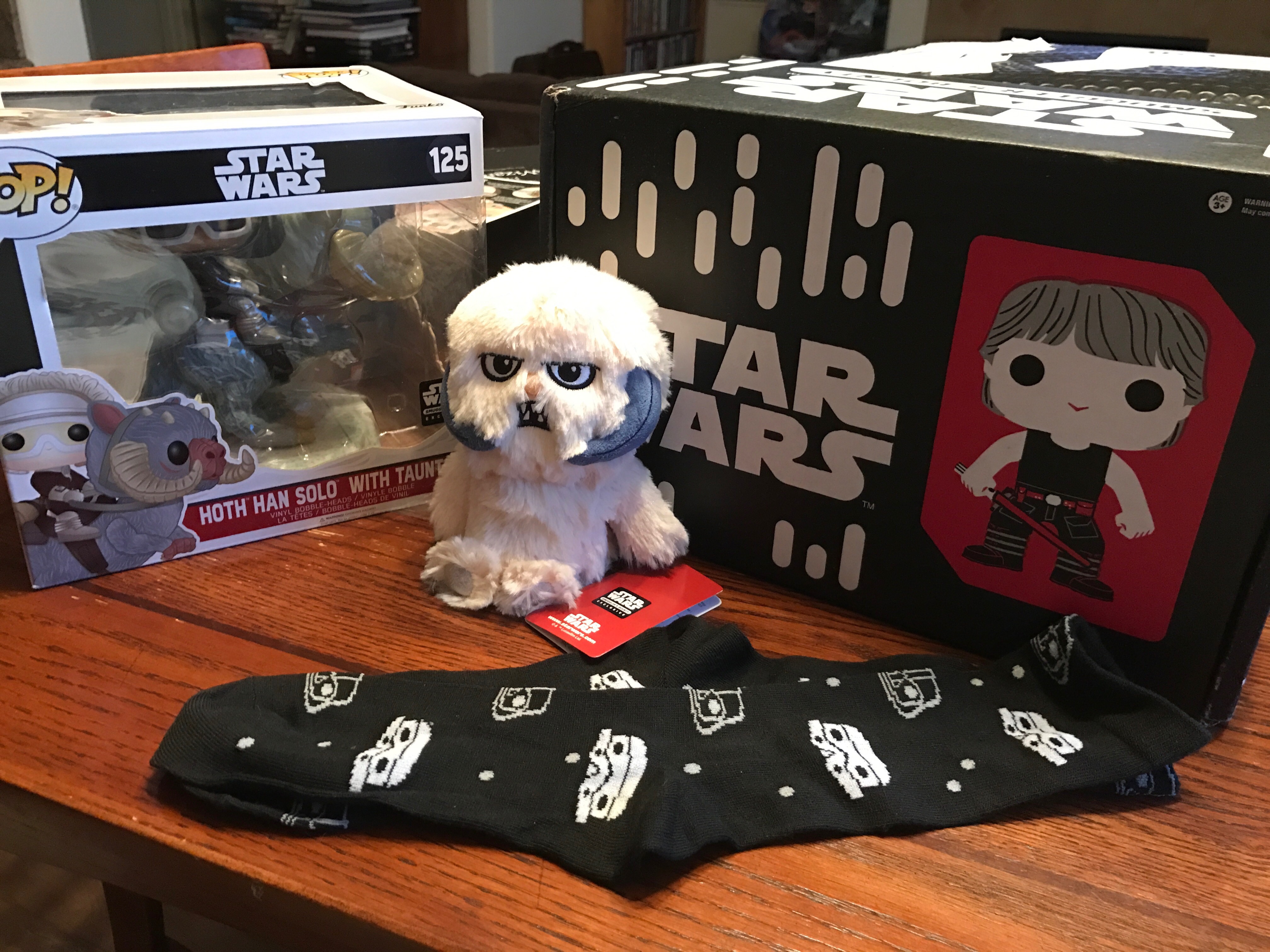 I just received the latest Smuggler's Bounty box from the folks at Funko. This box's theme was The Empire Strikes Back. I thought I would share what is inside so those that do not subscribe can get an idea of what is typically included.