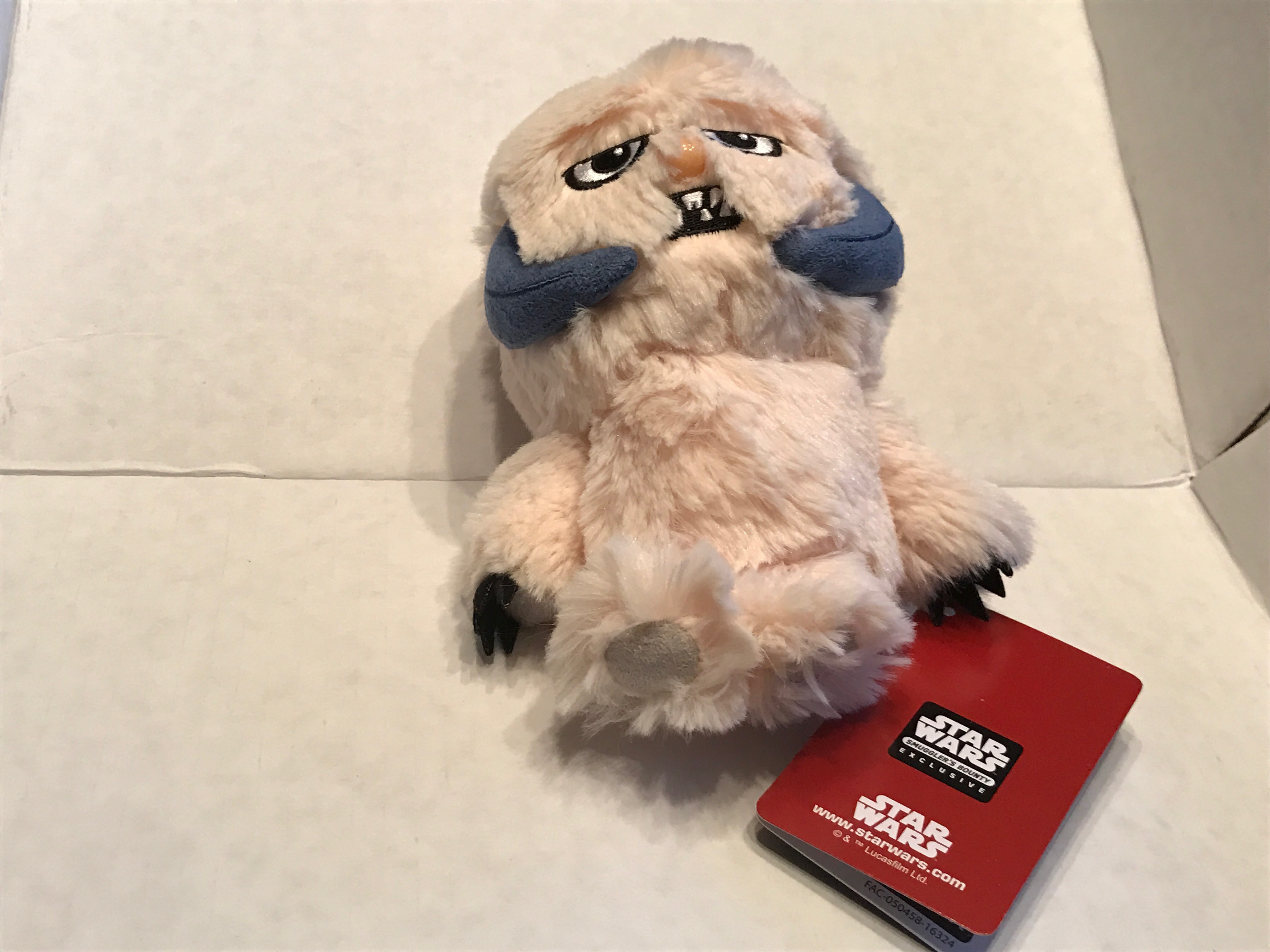 The plush Wampa is a bean bag plush with embroidered eyes and mouth with a plastic nose. The description of the plush includes the fun fact that in early scripts and storyboards for The Empire Strikes Back portrayed the Wampa tunneling through the snow to sneak uo on Luke Skywalker.