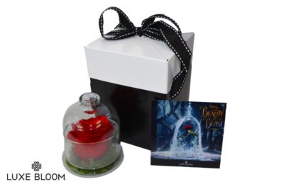 Luxe Bloom will be selling beautiful rose arrangements online in celebration of “Beauty and the Beast” at www.luxebloom.com and at amazon.com. They will offer three products; a 4.5” Glass Cloche containing one crimson rose is priced at $55; a 6”x 6” crimson Rose Box of 9 roses is priced at $149 and an 8”x8” crimson Rose Box of 16 roses is priced at $399.