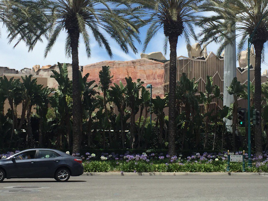 UPDATE: It appears that the themeing that is on the backside of Cars Land has been in place for sometime. While the City Council has made a request for further mitigation, Disneyland has not made any changes at this time.