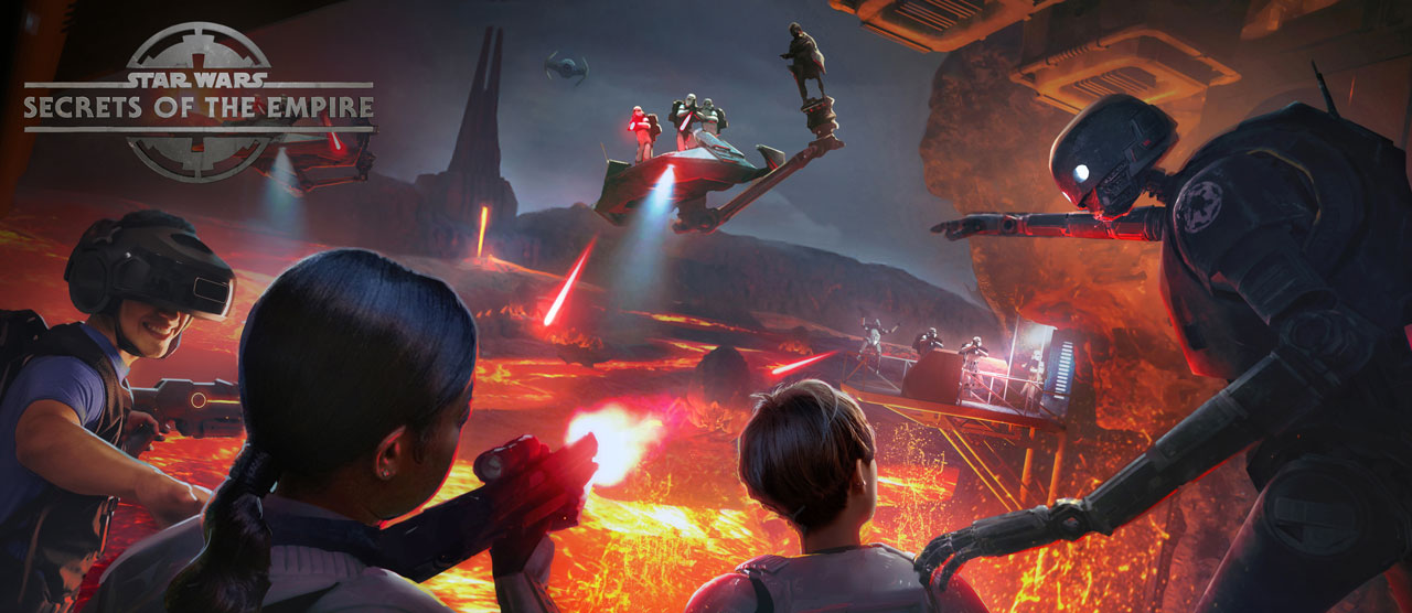 Star Wars: Secrets of the Empire is described as transporting guests deep into the Star Wars universe, walking freely and untethered throughout the multisensory experience with friends and family. In groups of four, teams will go undercover as stormtroopers to capture Imperial intelligence vital to the budding rebellion’s survival.