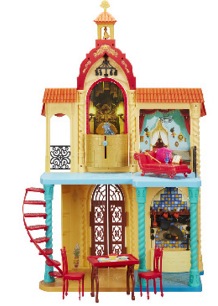 Step into the Kingdom of Avalor with the Royal Castle of Avalor Fashion Doll Playset. Full of many fun adventures, the castle is three feet tall featuring beautiful and intricate designs inspired by the castle in the Disney Channel television series, Elena of Avalor. Kids will love exploring two levels of surprises inside. Turn the top of the bell tower to reveal a secret chamber on the second floor or raise the jewel knob on the trap door to see Zuzo of Avalor pop up from inside. The castle features several rooms inside including a dining room where the table flips between a dining room table or a desk. The Royal Castle of Avalor Fashion Doll Playset Playset includes the castle, Zuzo of Avalor figure, and themed accessories. Available at most major retailers and on HasbroToyShop.com.