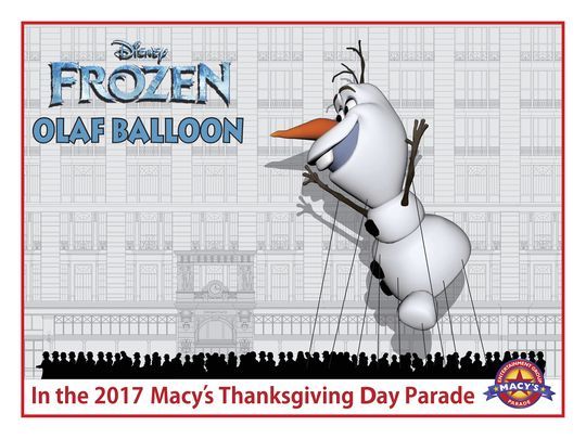 USA Today has revealed that an Olaf balloon will appear in this year's Macy's Thanksgiving Day Parade. “Having an Olaf balloon alongside Mickey, Elmo and Big Bird is a dream come true and something that, because (the parade’s) so storied and has such a long tradition, I now get to share with my own kids,” says Josh Gad, the voice of Olaf.