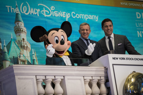 Chairman and CEO of The Walt Disney Company Bob Iger and Mickey Mouse rang the opening bell of The New York Stock Exchange in celebration of the company's 60th Anniversary as a listed company.