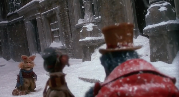 Throughout the film, Gonzo and Rizzo are invisible storytellers. It isn’t until the last act of the film that they become visible to the rest of the Muppet community. Brian describes it as the moment where the story “catches up” in real time. It’s even reflected by the fact that the narrators begin to leave footprints in the snow.