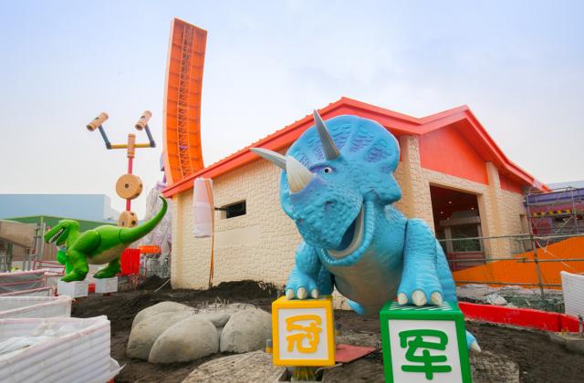 The Rex’s Racer attraction, currently under construction in Shanghai Disneyland’s Toy Story Land, celebrated a major milestone this week with the installation of Rex and Trixie.