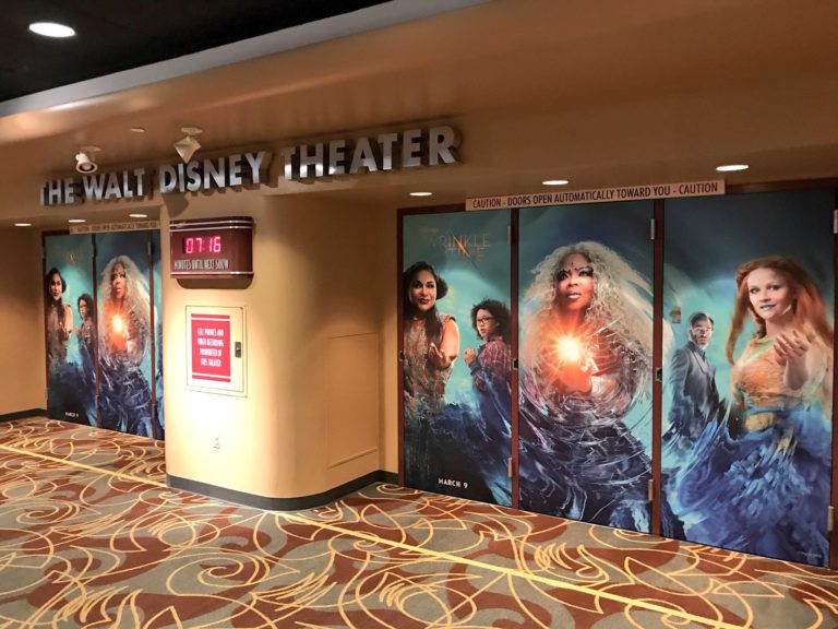 Disney Legend Oprah Winfrey portrays Mrs. Which in the film as is prominently displayed on the doors of The Walt Disney Theater where the sneak peek is screened.
