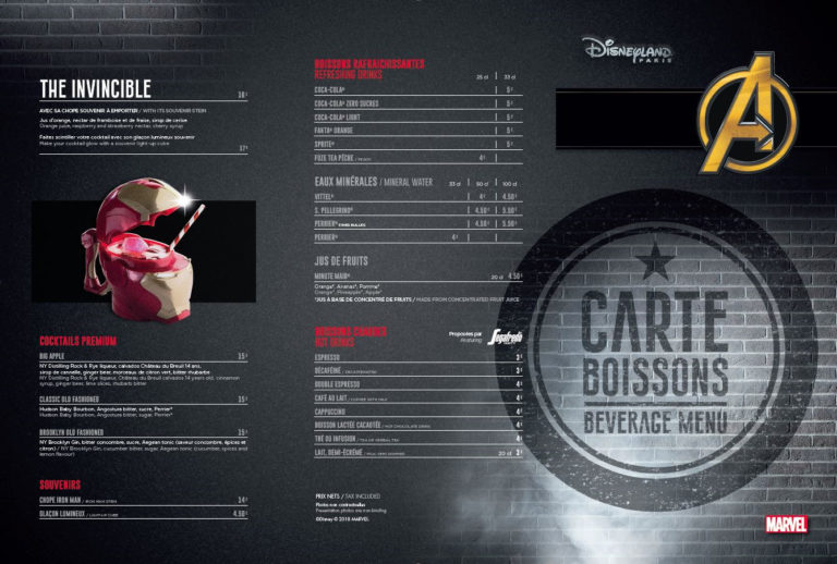 The Manhattan Restaurant at Disney's Hotel New York will offer speciality themed beverages and the exclusive Iron Man mug. Their beverage menu includes:
