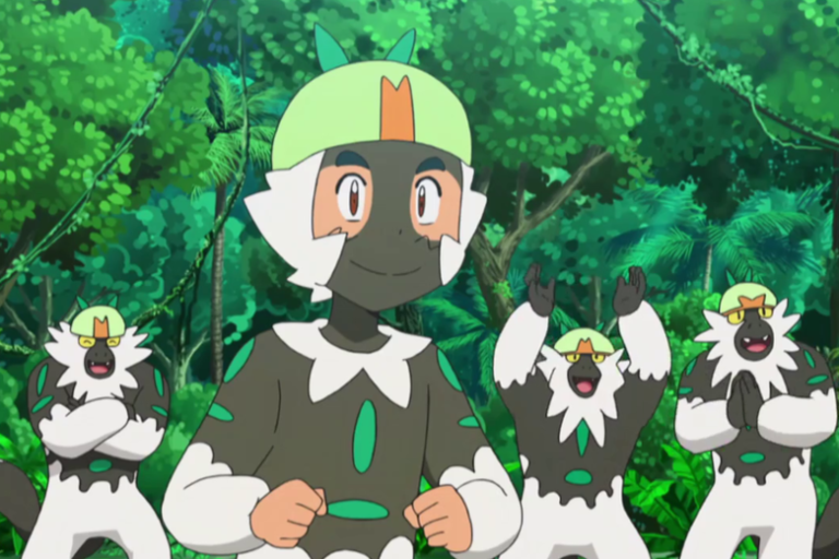 - The main storyline for this episode sees Ash and his friends meeting a group of lemur-like Pokémon creatures called Passimian. The Passimian are causing trouble in a nearby town and Ash decides to see what he can do about that. Ash dresses like the Passimian and goes so far as to paint his face black to blend in and earn their trust.