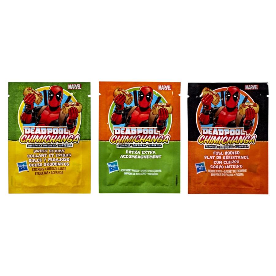 - "Satisfy cravings for Deadpool awesomeness with a randomly packed Chimichanga Surprise with Mystery Filing! Unwrap each Chimichanga Surprise pack to reveal the Mystery Fillings. Each pack includes one 2-inch scale Deadpool figure, one accessory, and one sticker sheet. There are 12 to collect in Order 1. Each sold separately. And for the love of unicorns: these items are NOT for eating. C’mon, people!"