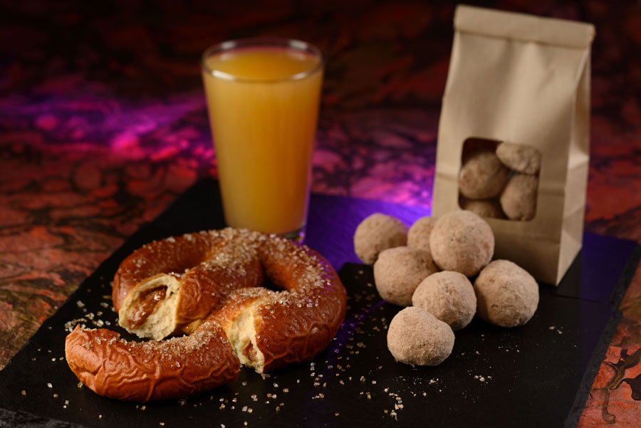 - Treats at the Cider House (available on party nights only) The Cider House (Golden Oak Outpost) is serving up apple cider, warm caramel-stuffed pretzel and cinnamon donuts. The perfect combination to make a frighteningly sweet snack!