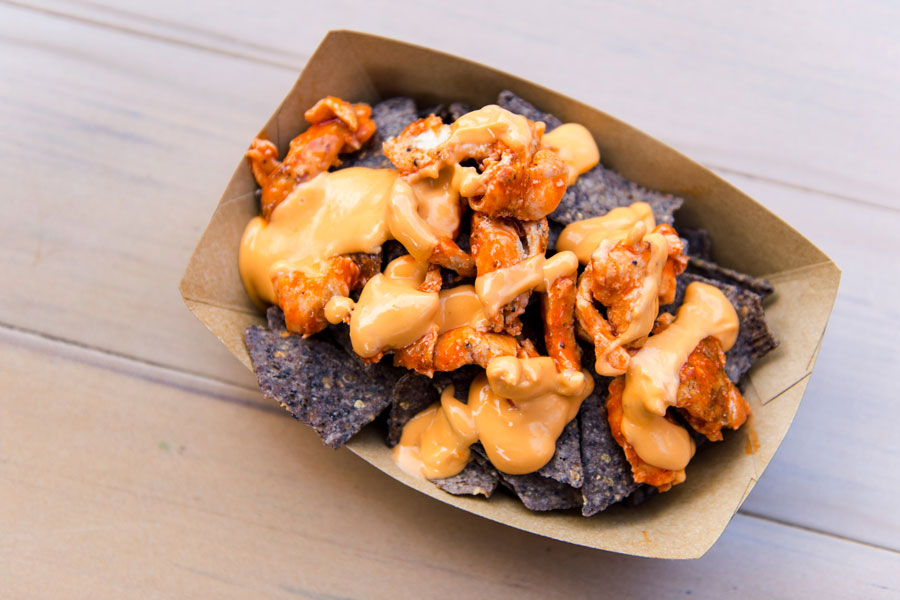 - Hades Nachos – Pecos Bill Tall Tale Inn and Café (available on party nights only) Black bean nacho chips topped with fiery buffalo chicken and choice of toppings from the topping bar.