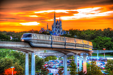 - Item 3: Walt Disney World Mark VI Monorail Silver at sunset in front of the Magic Kingdom - 20" x 16" print on glass by Jim VanOstenbridge. Minimum bid $75
